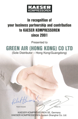 明利(香港)有限公司{Green Air (Hong Kong) Co. LTD.}是德國(guó)凱撒授權(quán)在中國(guó)廣東省和港澳地區(qū)的總代理。廣州市明愷工業(yè)設(shè)備有限公司 是 明利(香港)有限公司 在中國(guó)大陸注冊(cè)投資的一家外資公司,主要負(fù)責(zé)凱撒空壓機(jī)及其后處理系統(tǒng)在中國(guó)廣東省的銷(xiāo)售、安裝、維修服務(wù)。明利(香港)有限公司于1993年開(kāi)始跟KAESER合作,我們衷心希望能通過(guò)我們的努力和您的配合,把空壓機(jī)行業(yè)的先進(jìn)技術(shù)介紹給每一個(gè)客戶(hù),從而更好地貫徹KAESER的宗旨,樹(shù)立KAESER空壓機(jī)的良好形象。